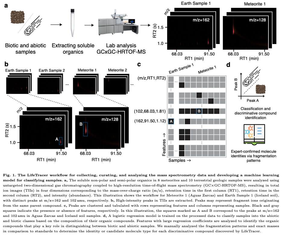 The project involves pre-processing 750 GB of 2D gas chromatography data to distinguish meteorites from soil samples based on their molecular signatures. I developed a Python package called LifeTracer to support future analyses of 2D gas chromatography data. In addition, I created a website to help readers explore the data from the papers more interactively.